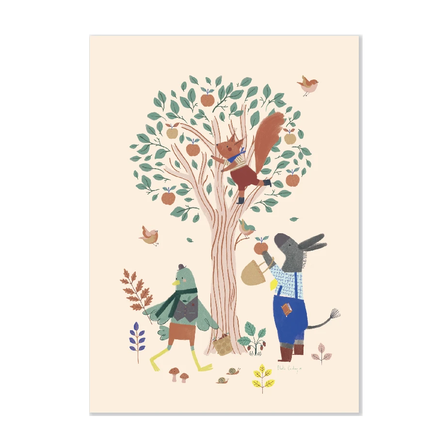 Affiche 50x70cm de la collection Pomme des Bois. Retrouvez Anatole l’Ăąne, Harry l’Ă©cureuil et leur ami Simonet pour une cueillette gourmande en forĂȘt. IllustrĂ©e par Ălodie Coudray. ImprimĂ© en France Ă base d’encres vĂ©gĂ©tales sur du papier certifiĂ© FSC. Vendue sous tube.