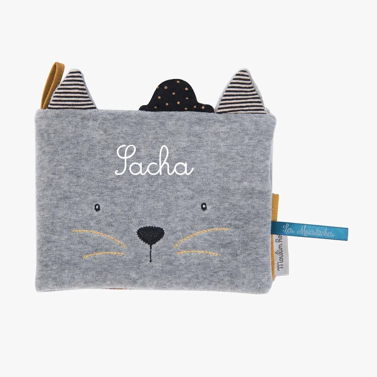 Album photo Fernand le chat en velours éponge, avec deux oreilles, des moustaches et un chapeau à pois ! Comprend 9 pages pour glisser ses photos, une attache velcro pour le fermer et un lien pour l’emmener partout. Peut être brodé au prénom de l’enfant.