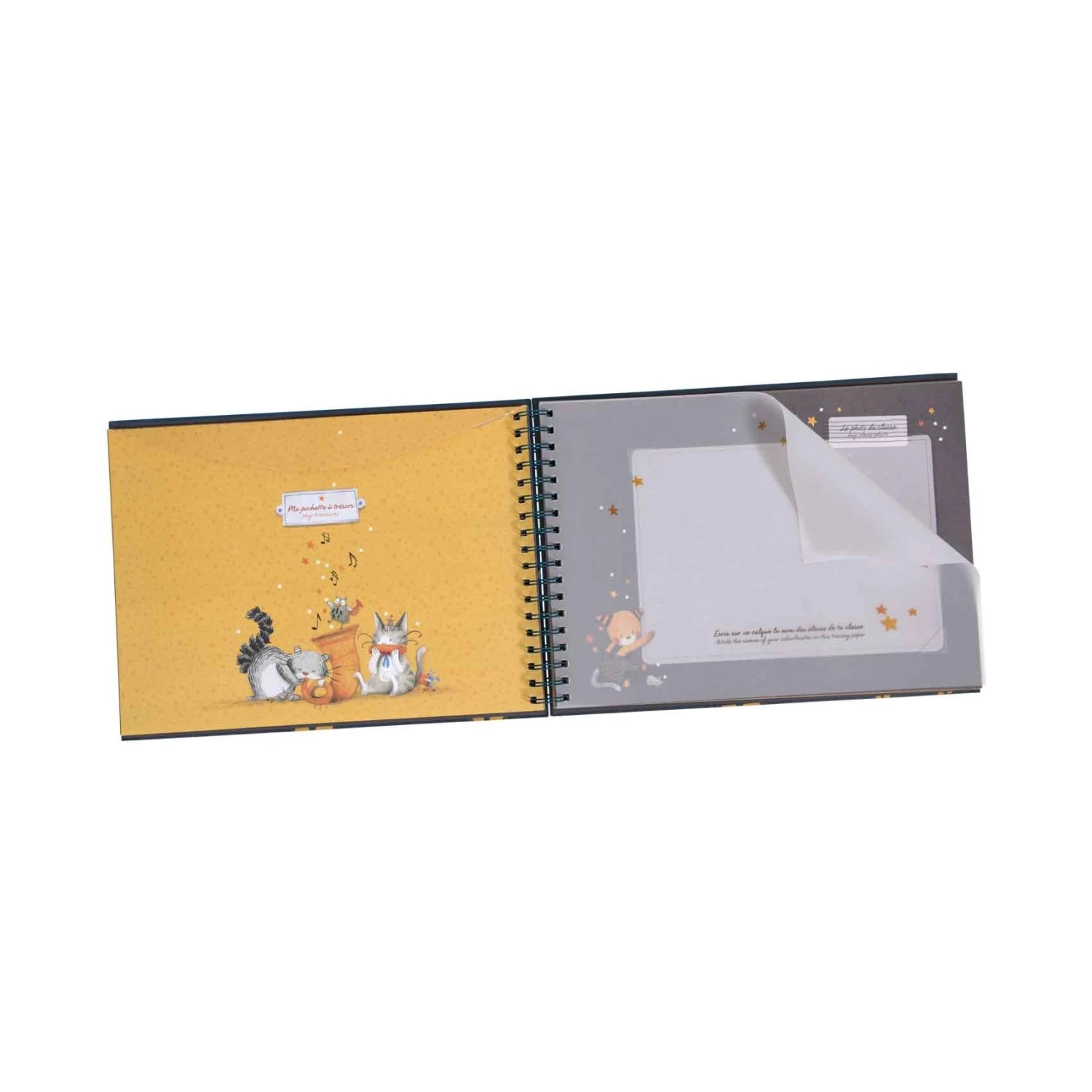 Album à spirales pour conserver les meilleurs souvenirs d’école ! Grâce à 36 pages pour 8 années scolaires, il contient tous les précieux moments de l’enfance avec chaque fois : 1 page de présentation, 1 page de photos, et une pochette à trésors…