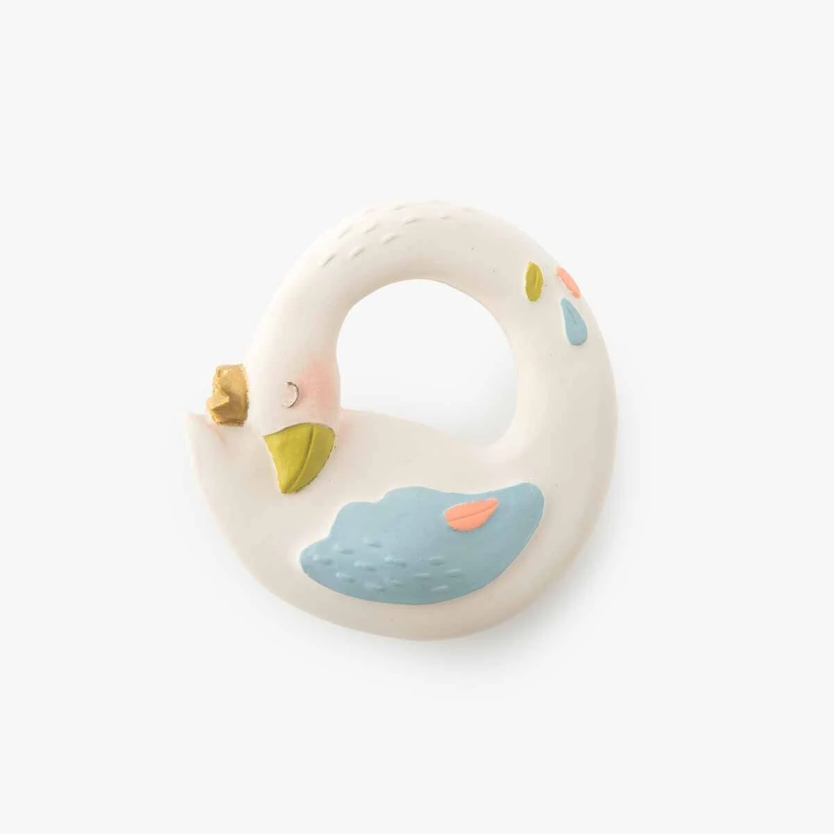 Anneau en caoutchouc 100% naturel, issu de la sève d’Hévéa, avec Olga l’oie et ses plumes colorées. Pour soulager les dents de bébé ou jouer dans le bain, il n’a ni trou ni sifflet pour éviter l’accumulation de saletés à l’intérieur.