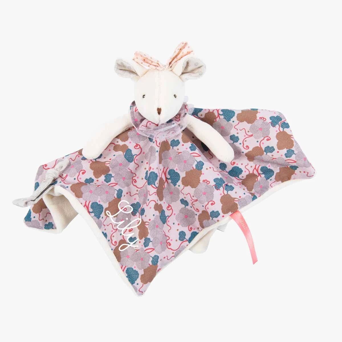 Pour veiller sur bĂ©bĂ©, doudou petite souris raffinĂ©e en voile de coton fleuri doublĂ© velours avec collerette de tulle pailletĂ©. Plat, il est facile Ă saisir par ses petites mains et comprend une patte attache tĂ©tine. Peut ĂȘtre brodĂ© au prĂ©nom de l’enfant.