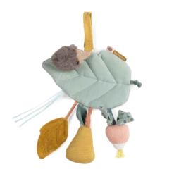 Suspension feuilles d’activités au jeu de couleurs, textures et motifs variés. Bébé pourra s’amuser avec tout un tas de surprises : une feuille qui fait scritch, la poire qui fait pouët.