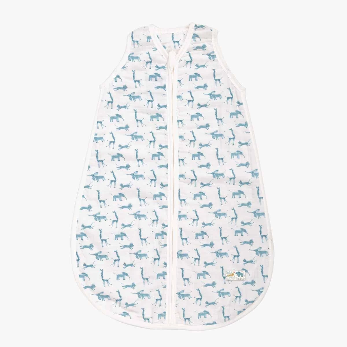 Gigoteuse d’été 0-6 mois, en coton biologique, idéal pour les températures estivales (TOG 1). Imprimée d’un motif animaux, dessiné à l’aquarelle spécialement pour la collection. Zippée sur le devant.