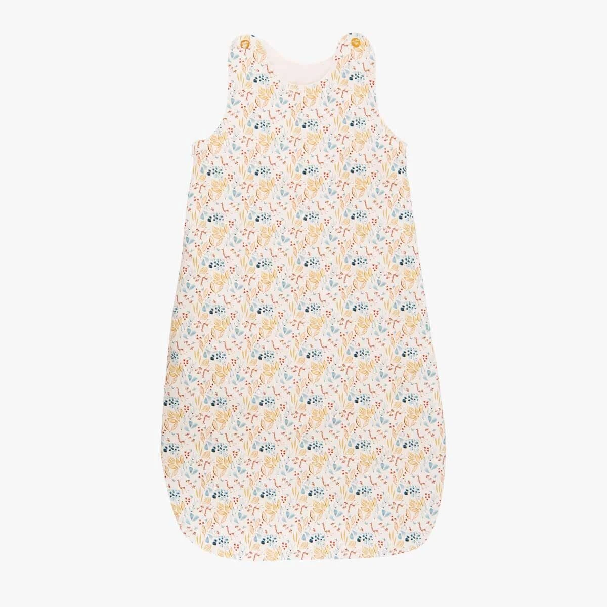 Gigoteuse 6-24 mois, en matiĂšre naturelle 100% coton pour laisser respirer la peau de bĂ©bĂ©. ImprimĂ©e d’un motif floral dessinĂ© Ă l’aquarelle spĂ©cialement pour la collection. Fermeture Ă glissiĂšre et boutons-pression pour un habillage facile.