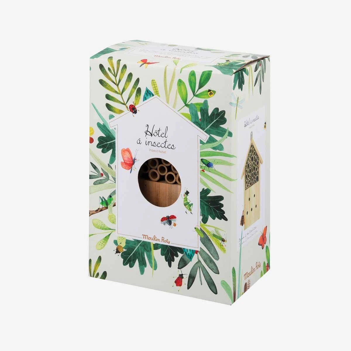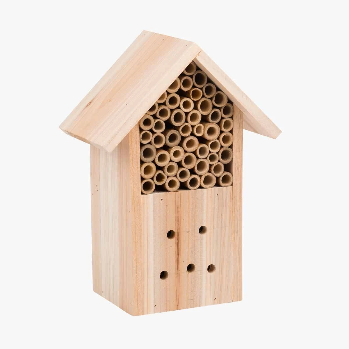Petite maison en bois massif, composée de cylindres de bambou pour accueillir les insectes. Accrochée à l’abri des vents dominants, ce refuge invite les insectes à passer l’hiver, à se protéger des nuits fraîches, il aide ainsi à préserver l’écosystème.