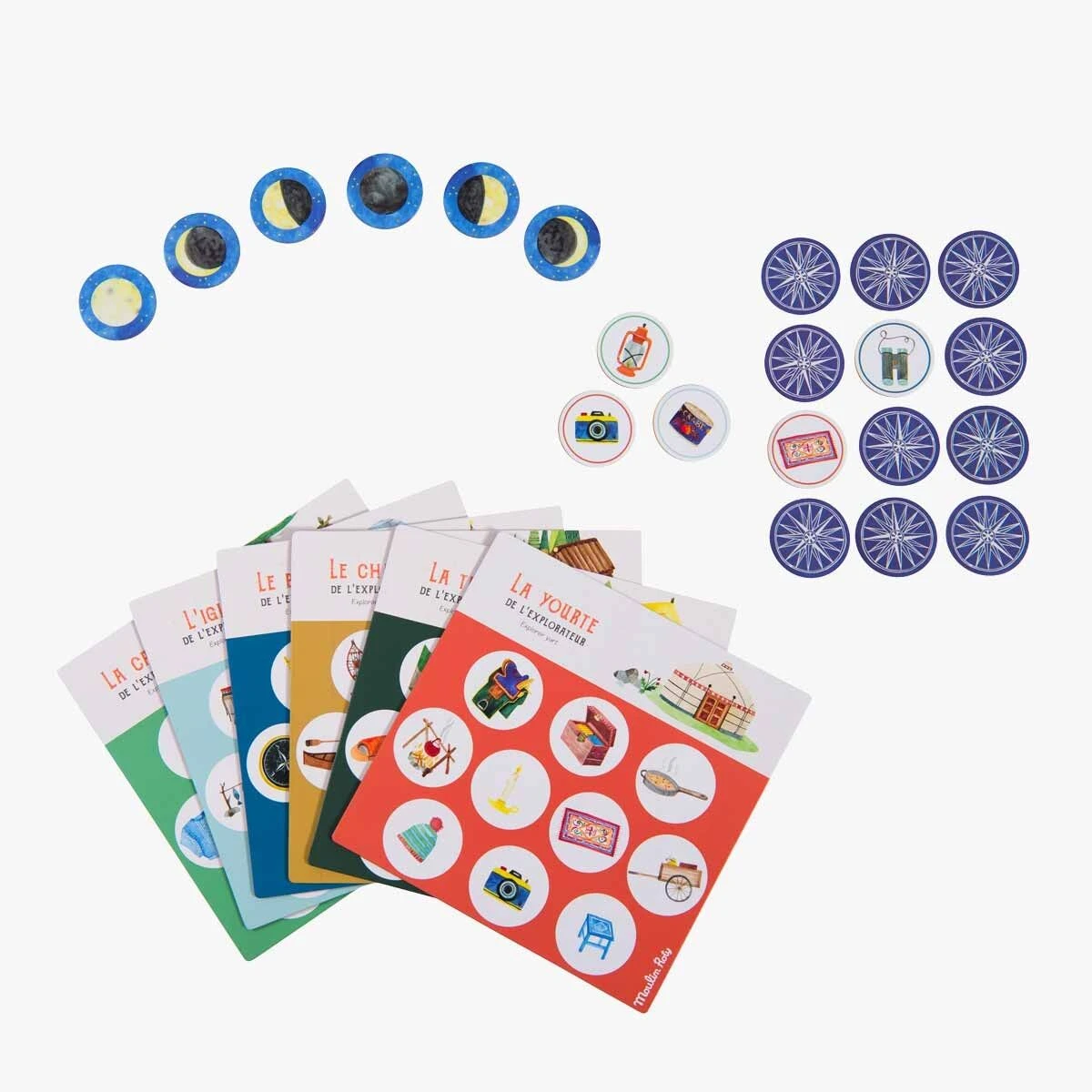 Dans ce jeu d’observation et de mémoire, il s’agit de préparer tout le matériel de son campement avant que la nuit tombe ! 6 planches et 60 cartes objet dessinés à l’aquarelle, pour représenter les plus grandes expéditions dans la nature ! De 2 à 6 joueurs