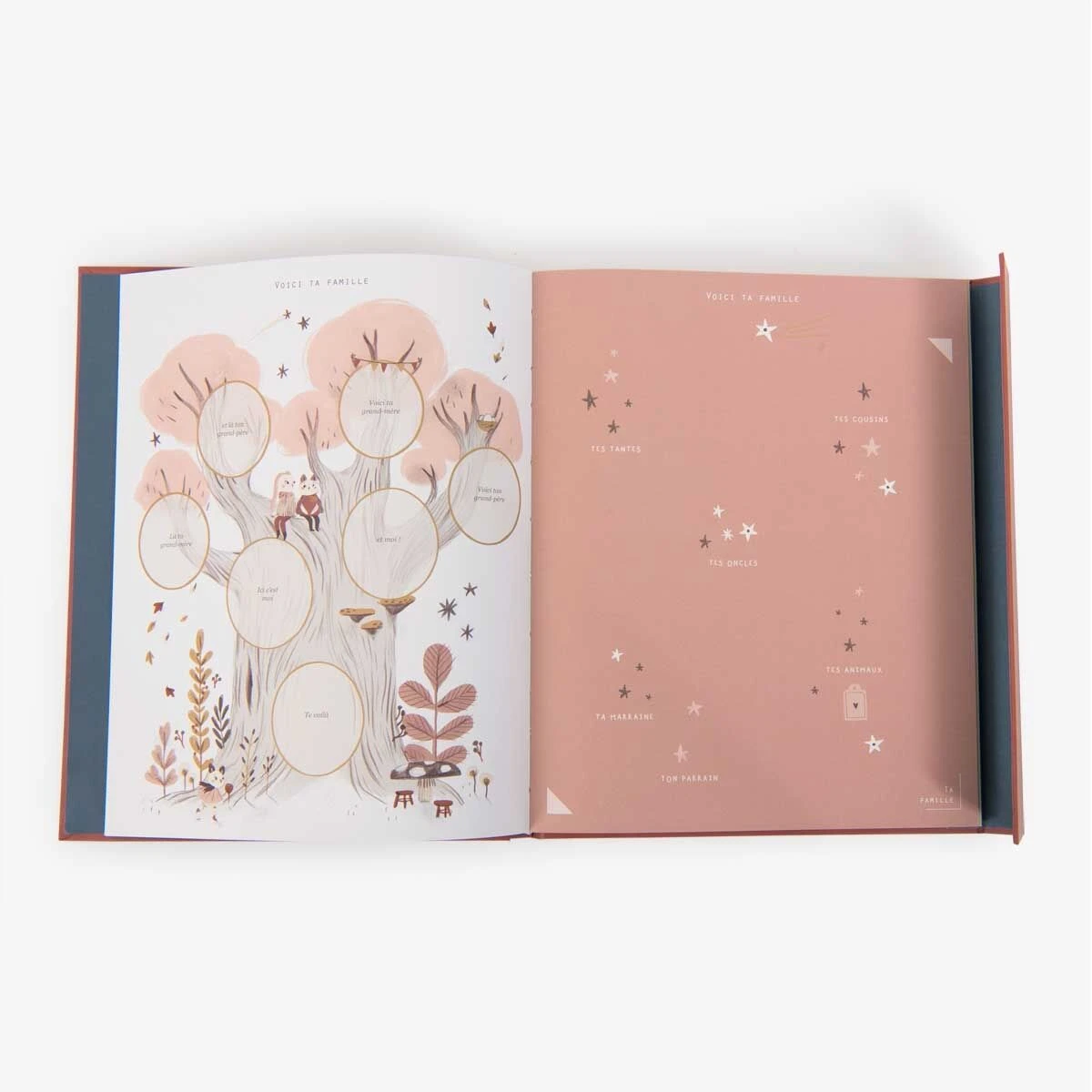 Ce livre à trésors de 80 pages illustrées accompagne les enfants de ses premiers jours à ses 6 ans. Un recueil de mots et d’images, avec 6 enveloppes à souvenirs et 1 toise en cadeau. Fermeture aimantée, et textes non genrés pour l’enfant et les parents.