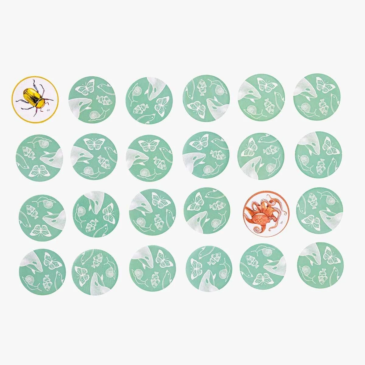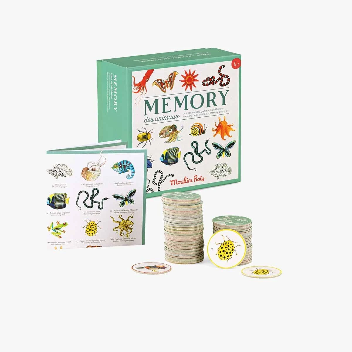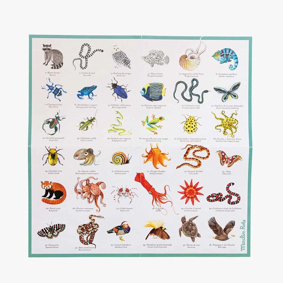 Jeu d’observation et de mĂ©moire qui aborde le thĂšme des animaux ! Toutes les cartes sont faces cachĂ©es sur la table, celui qui collecte le plus de paires d’animaux est le gagnant. Contient 36 cartes animaux x 2 et 1 poster.