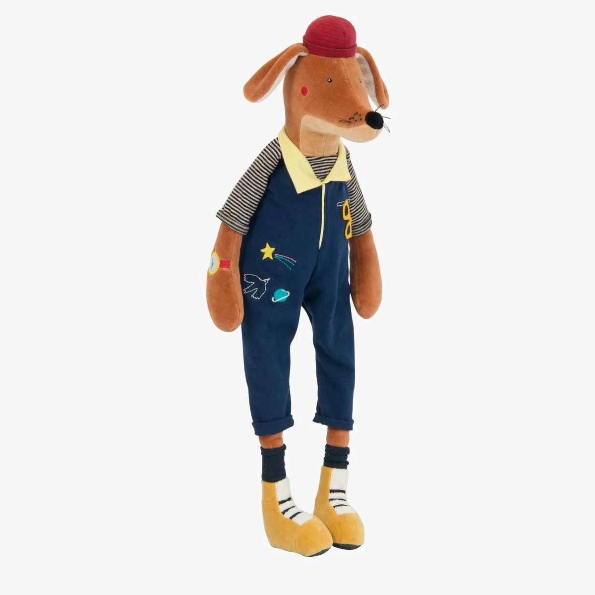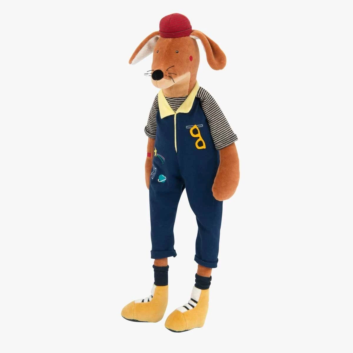 Elvis le chien enfile sa salopette dĂ©contractĂ©e et son bonnet rayĂ© pour se rendre Ă son cours de dessin. Toujours cool, ce fan des 90’s est le compagnon lookĂ© qui plaira aux petits et aux grands, pour jouer… ou dĂ©corer !