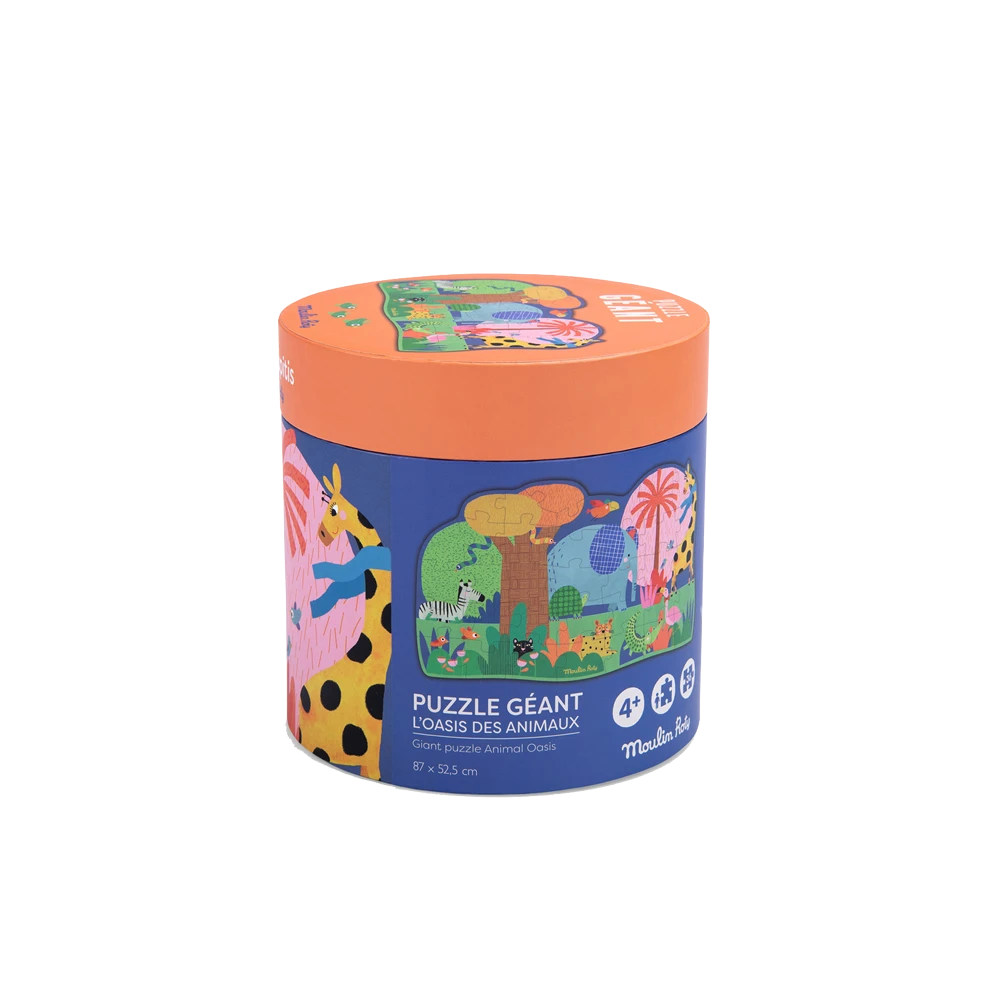 Puzzle géant ‘ L’oasis des animaux ‘ avec 36 grandes pièces en carton épais, faciles à prendre en main, issu de la collection les Toupitis. Contient un poster modèle pour aider l’enfant à reconstituer le puzzle. 4 ans et +