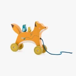 Renard en bois à tirer pour l’emmener partout avec soi, avec deux oiseaux compagnons posés sur son dos. Couleurs et illustrations rafinées à l’image de la gamme pour une touche de fantaisie.