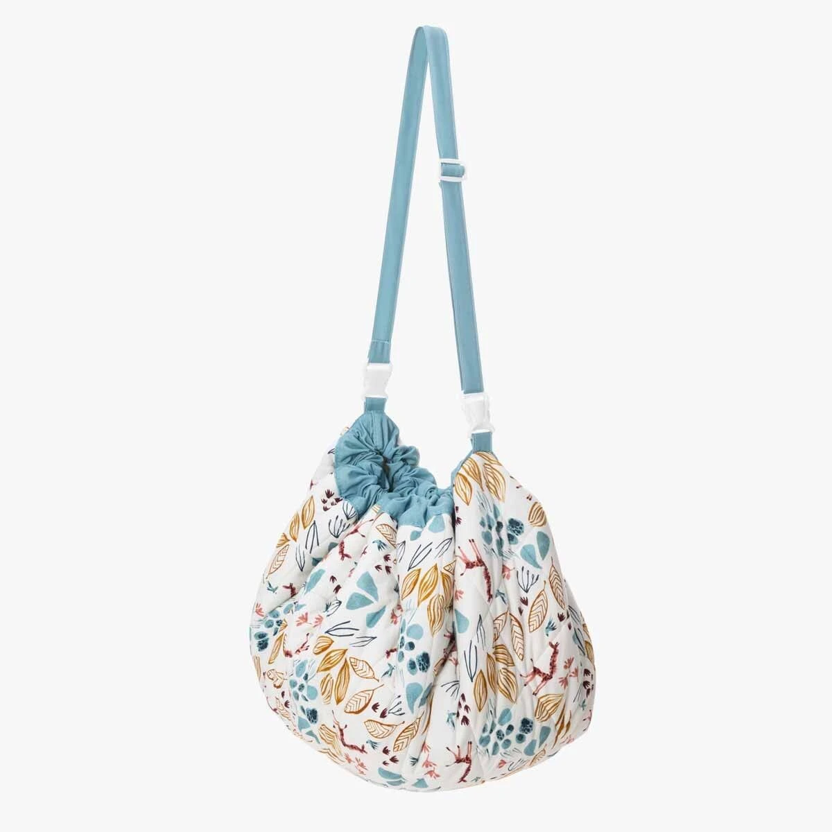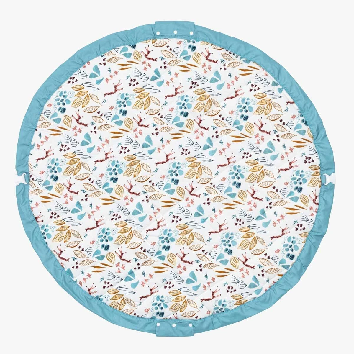 Pratique ! Ce tapis de jeu molletonné en toile 100% coton se transforme en sac de rangement à emmener partout avec soi. Il suffit de resserrer ses deux cordons puis de le transporter grùce à sa laniÚre ajustable.